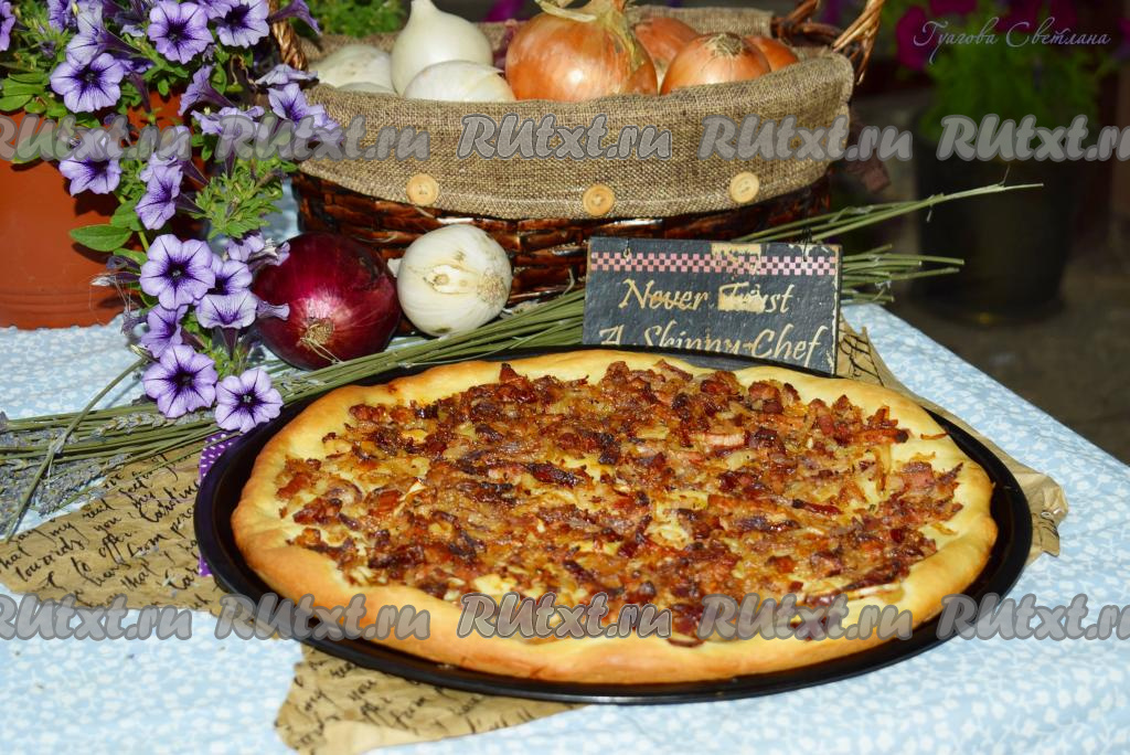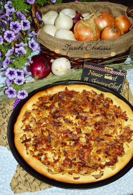Немецкий луковый пирог "Цвибелькухен" (Zwiebelkuchen) - вкусная, ароматная и очень интересная выпечка, которую можно без труда приготовить дома. Пирог получается достаточно сытным, а бекон, входящий в его начинку, дарит ему нотку подкопчёности. Такая выпечка прекрасно подходит к бокалу охлажденного пива или же красного вина. Если вы еще не пробовали такой пирог, то очень рекомендую!