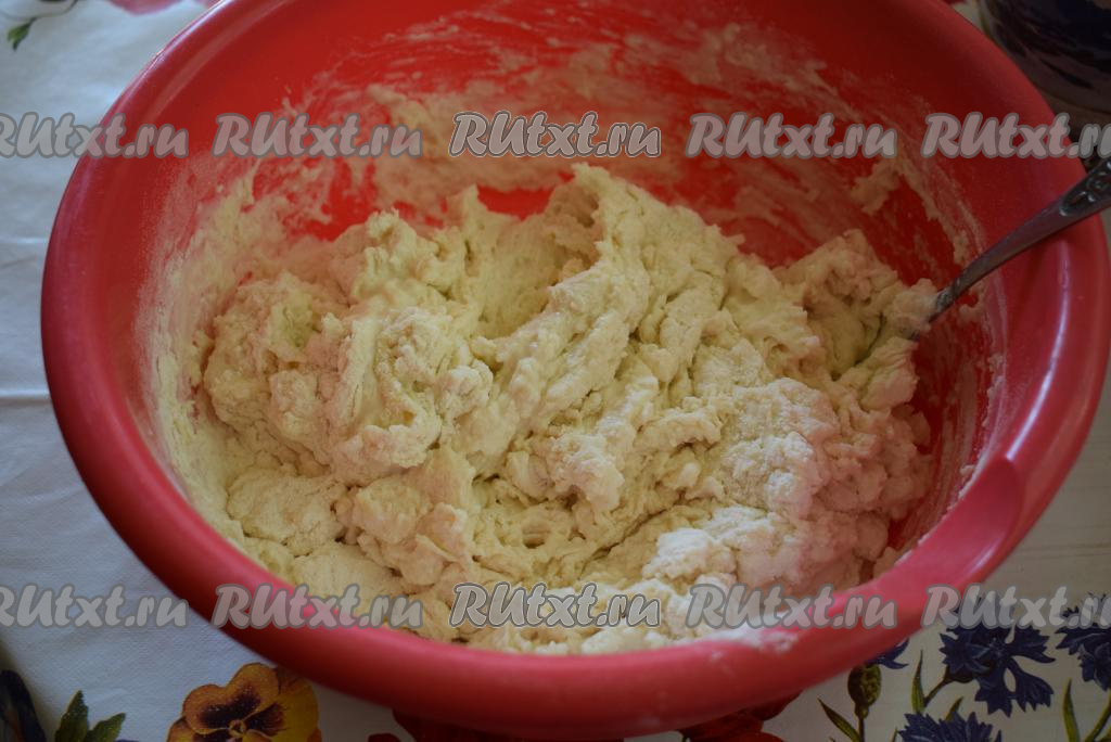 В смесь муки и дрожжей вливаем масляную смесь и очень хорошо перемешиваем. Затем вливаем 3 столовые ложки растительного масла и замешиваем тесто. Тесто должно получиться мягким и довольно однородным.