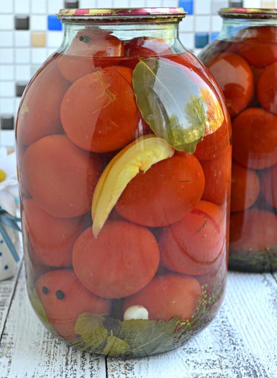 Затем банки перевернуть, укутать и оставить до полного остывания. Вкуснейшие маринованные помидоры в трехлитровых банках, приготовленные на зиму, переставить на хранение в кладовку.