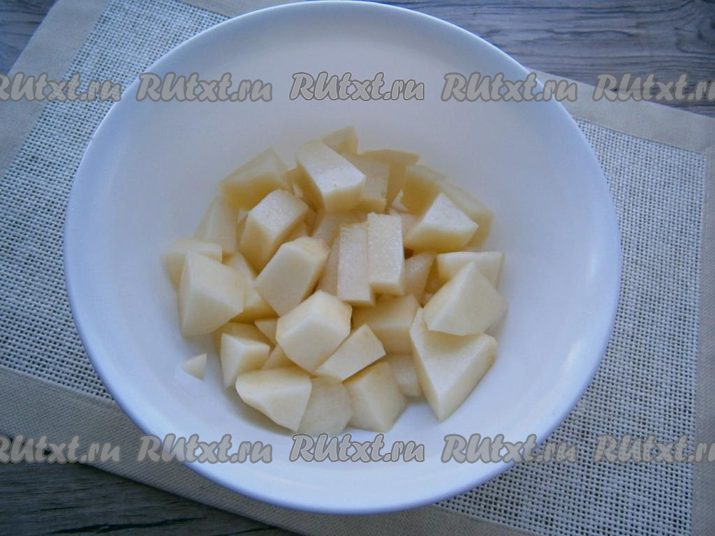 Отмерить 400 грамм мякоти, нарезать её кусочками.