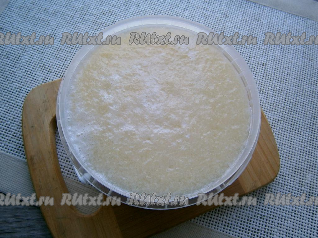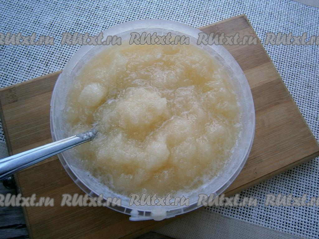 Влить сироп в пюре из дыни, перемешать. Выложить пюре в пластиковый контейнер или ведерко.
