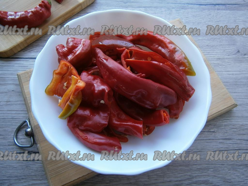 Острый жгучий перец осторожно (лучше в перчатках) освободить от семян. Перец перед приготовлением немного подсушить (дать перцу полежать несколько дней). Так при измельчении перец выделит меньше влаги и аджика будет гуще и суше.