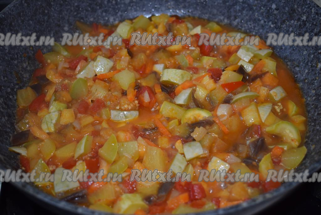 В процессе тушения овощи дадут много сока и будут томиться в собственном соку.