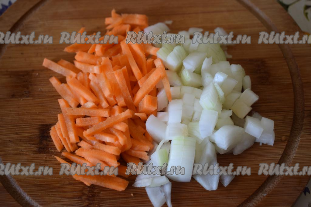 Мелко нарежем лук и морковь.