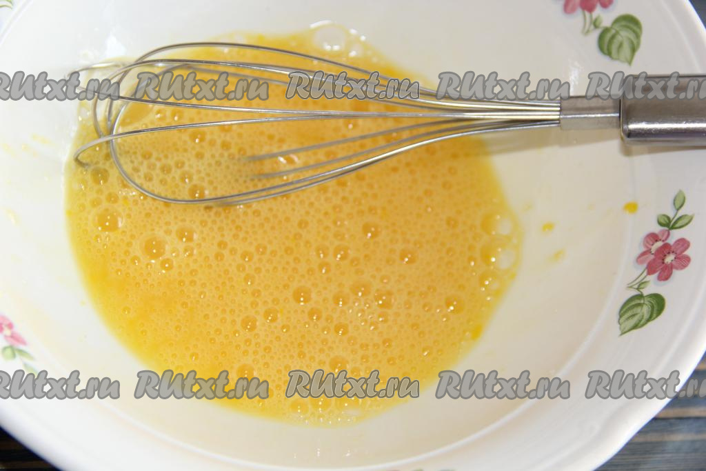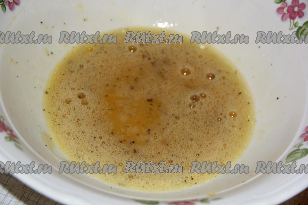 Добавить соль и специи, хорошо перемешать яичную смесь. Я положила 1 чайную ложку соли и 1/2 чайной ложки специй.