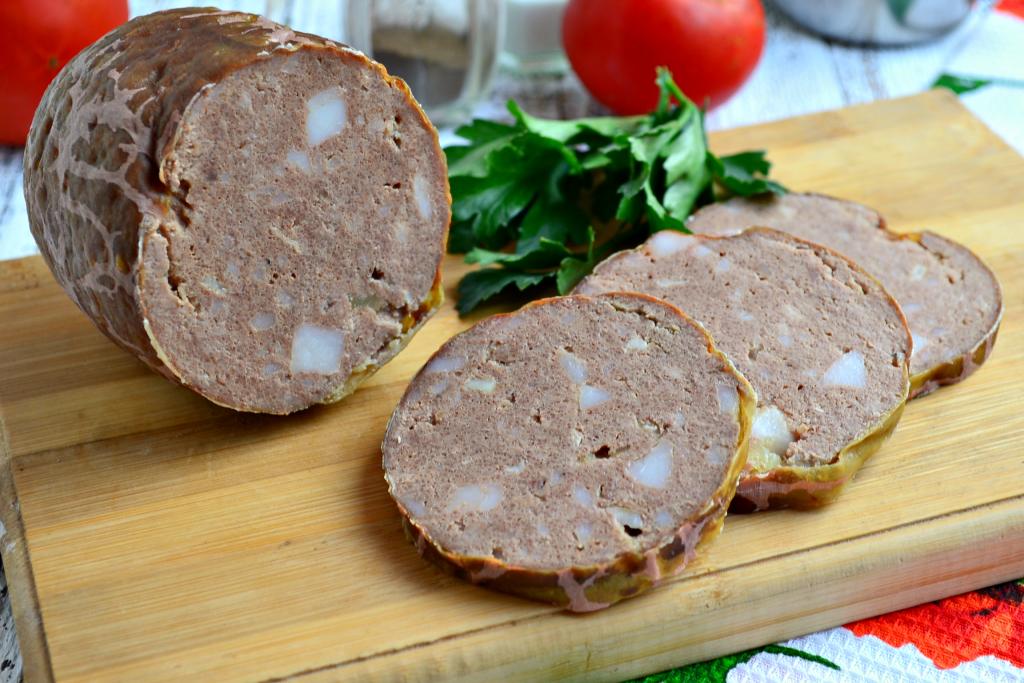 Очень вкусную печеночную колбасу, приготовленную в домашних условиях, остудить полностью при комнатной температуре, затем поместить в холодильник на 5-6 часов. Режется колбаска отлично, не распадается!