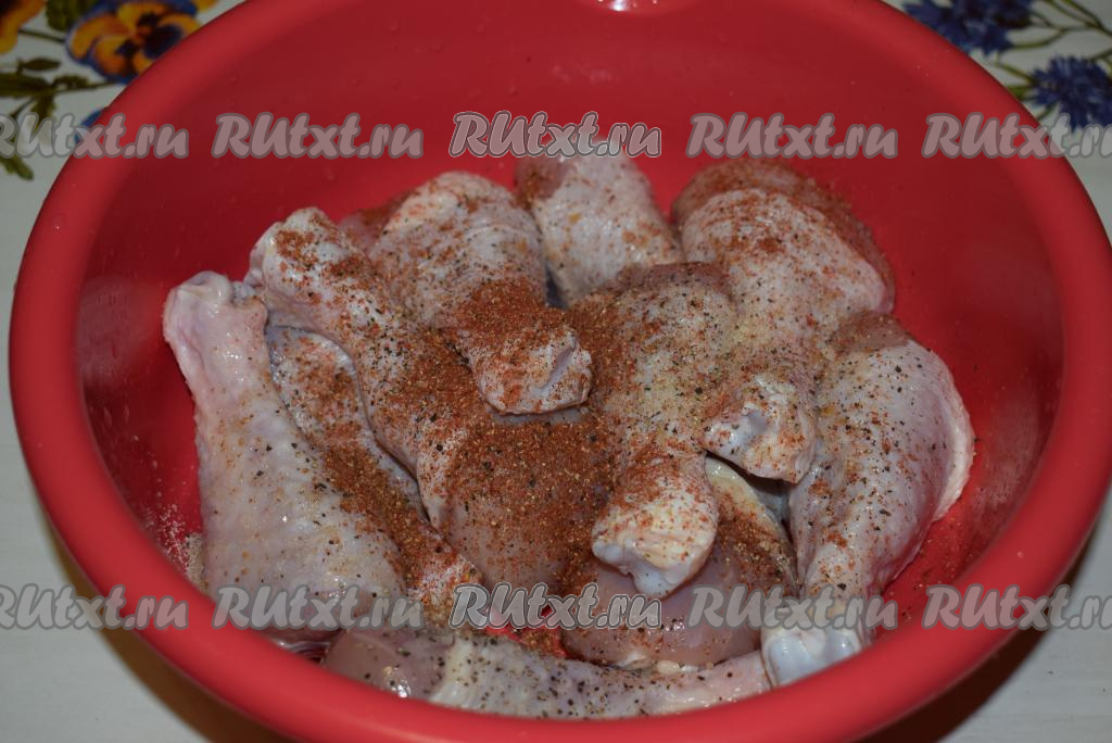 Поместим голени в миску, посолим, поперчим и добавим специи.