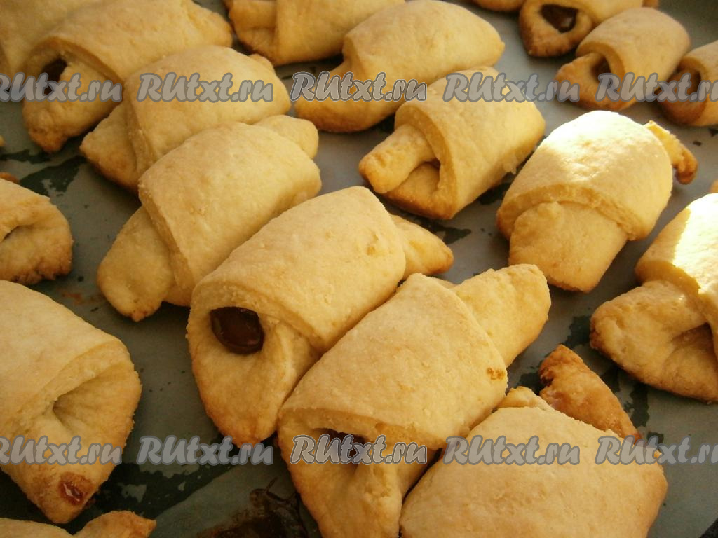 Предлагаю вам отличный рецепт творожного теста для приготовления рогаликов. Выпечка из такого теста получается очень вкусной, нежной и рассыпчатой. Начинку для рогаликов можно использовать любую: вареную сгущенку, густое повидло, фрукты и ягоды. Выпекаются рогалики из творожного теста в разогретой духовке при температуре 180 градусов около 25 минут.