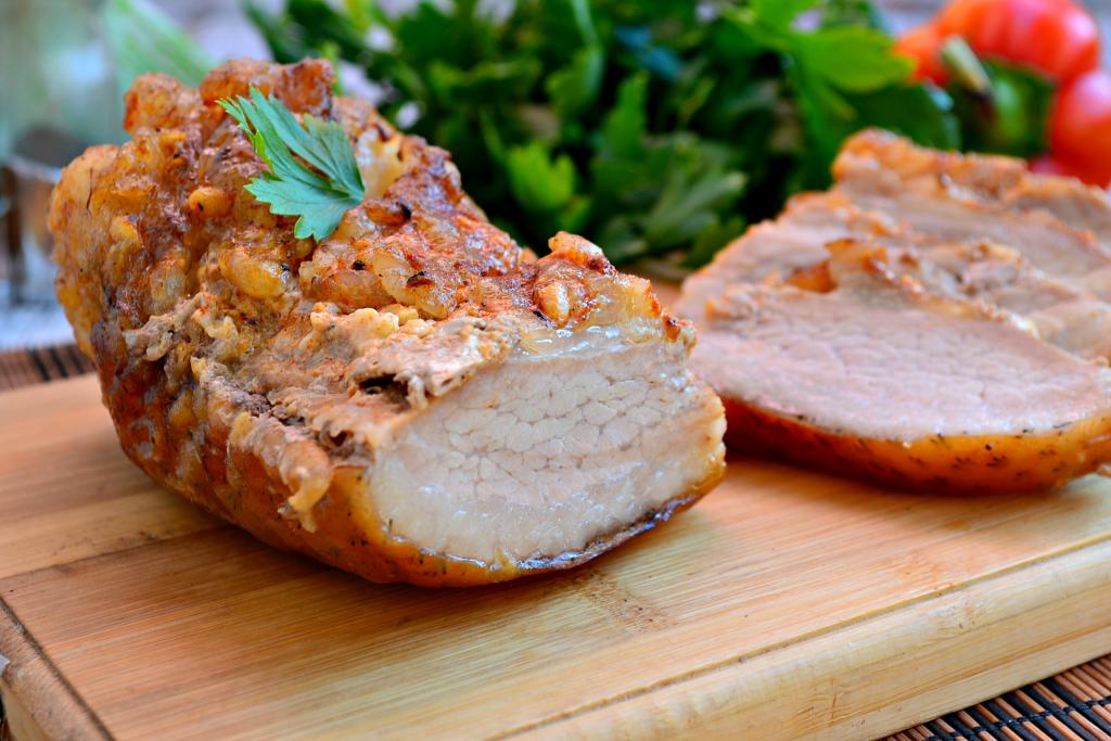 Лавровый лист выбросить, а вкуснейшую пузанину, запеченную в фольге в духовке, нарезать кусочками и подать к столу с гарниром. Для бутербродов аппетитное сало с мясными прослойками нужно охладить в холодильнике часа 3-4, завернув его в пергаментную бумагу.