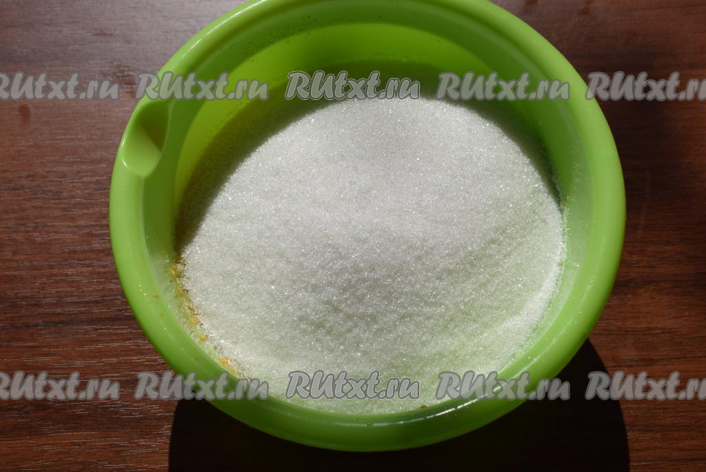 Вылить содержимое блендера в миску и засыпать сахаром.