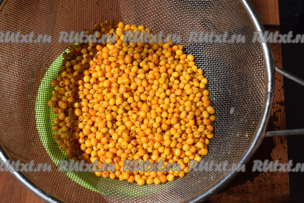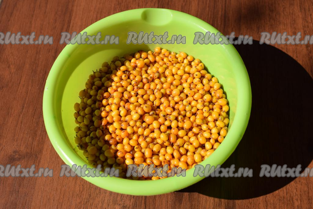 Облепиху перебрать, очистить от веточек, удалить испорченные ягодки.
