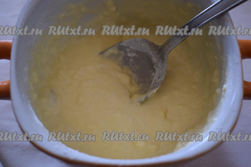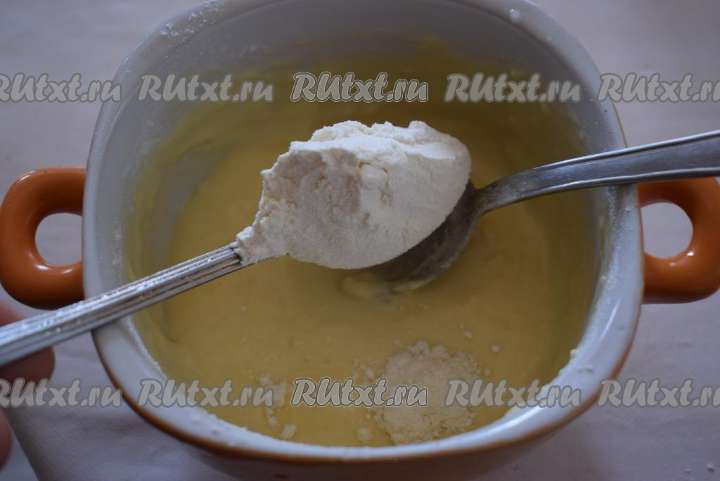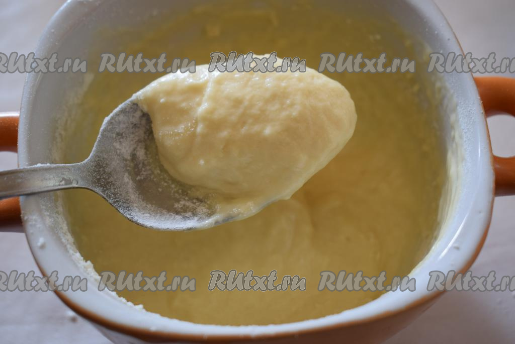 Перемешиваем сметану с яйцом и солью, затем постепенно начинаем вводить муку.