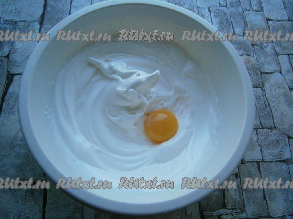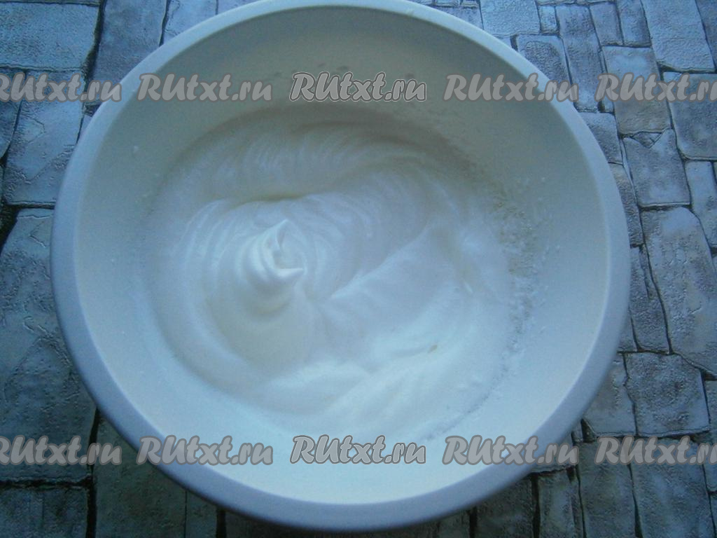 Охлажденные яйца разделить на белки и желтки. Белки взбить со щепоткой лимонной кислоты миксером до пышного состояния и устойчивых пиков (взбивать в течение 3-4 минут).