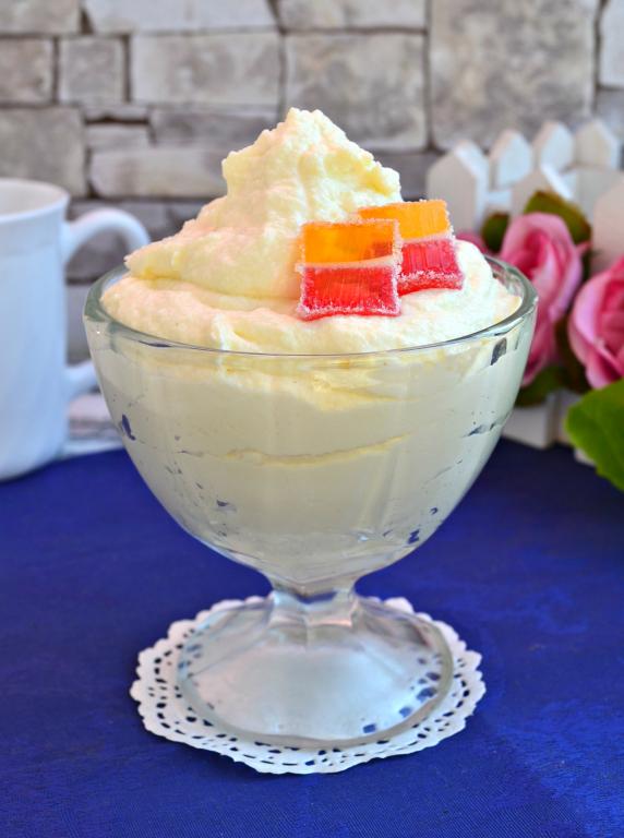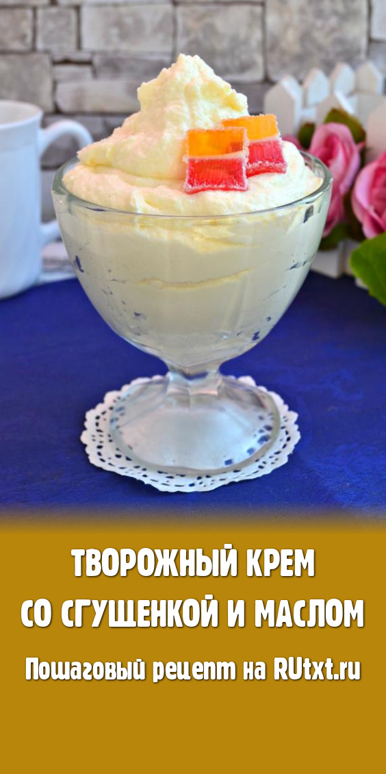 Пышный и очень вкусный творожный крем со сгущенкой и маслом готов. Его можно использовать для наполнения трубочек, корзиночек, украшения и приготовления тортов. Если вы планируете украшать им выпечку, то поместите его минут на 15 в холодильник.