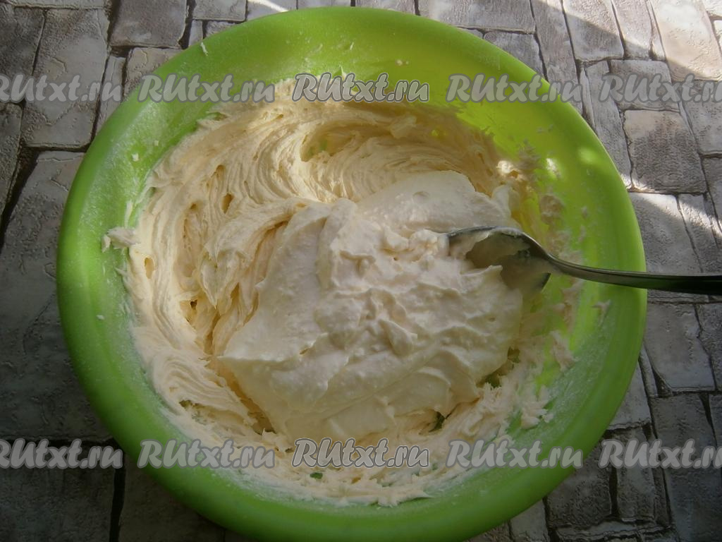 Творожную массу добавить в масляную смесь.