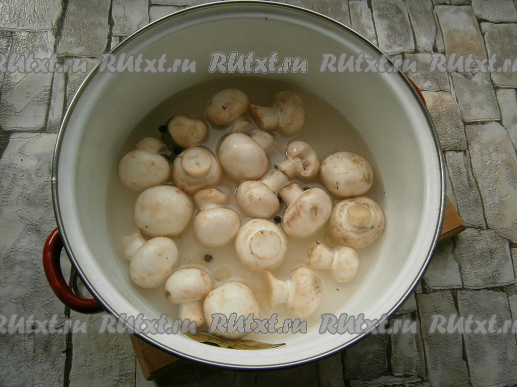 Когда маринад вновь закипит, варить шампиньоны около 10 минут на небольшом огне.