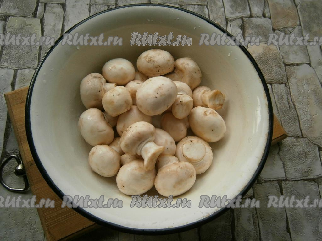 Маринад проварить на небольшом огне 2-3 минуты, после чего выложить в него шампиньоны.