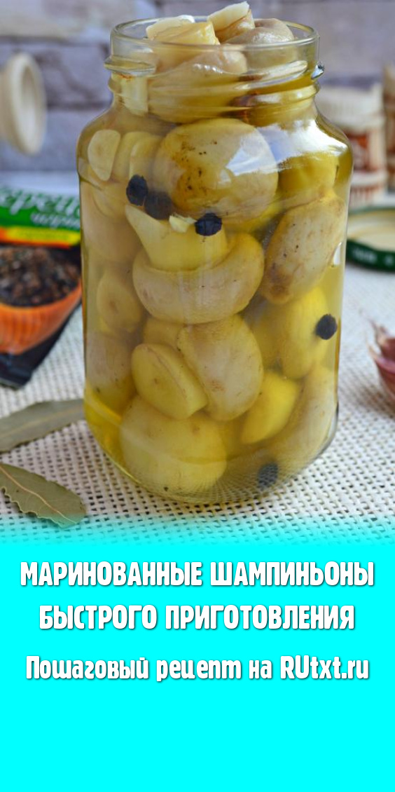 Очень ароматные и вкусные маринованные шампиньоны быстрого приготовления выложить в баночку, залить маринадом, дать остыть. Далее закрыть баночку, поместить в прохладное место на пару часов и можно подать маринованные грибочки в качестве закуски или использовать для приготовления салатов.