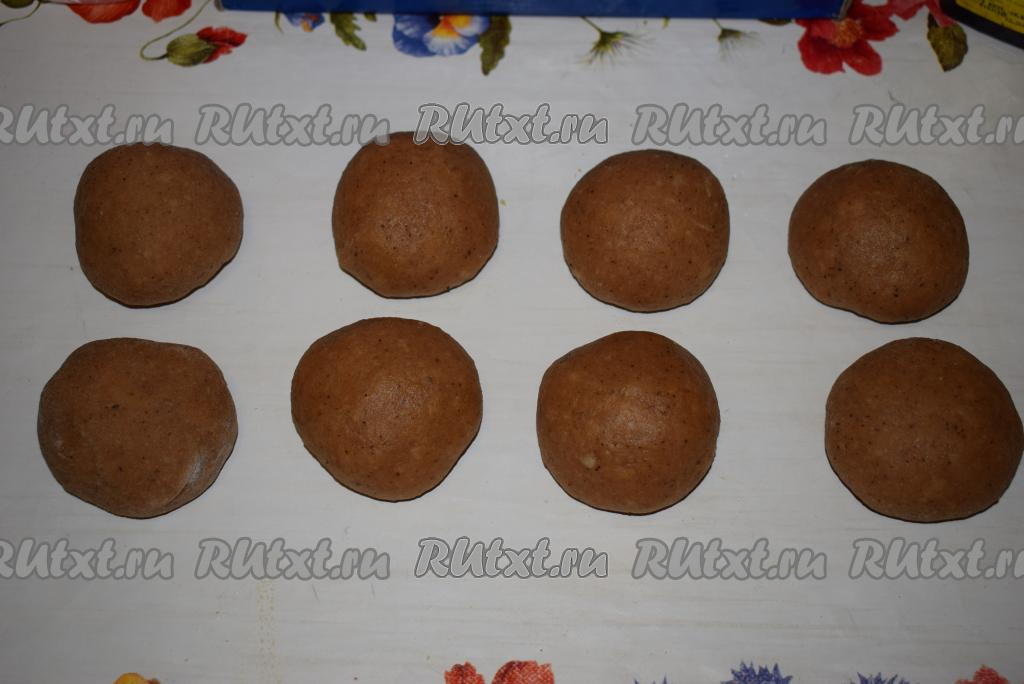Готовое тесто разделим на 6-8 кусочков (я разделила на 8 кусочков весом по 102 грамма каждый, в итоге у меня получилось 4 тульских пряника).