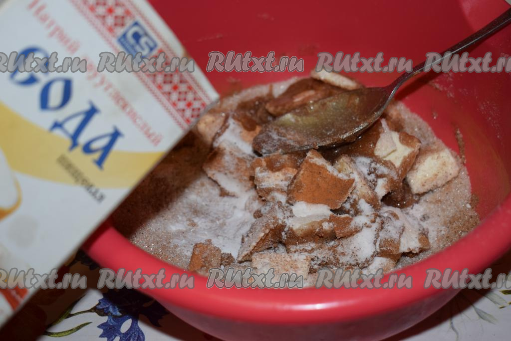 Кладем соду. Соду гасить не надо (!), мед сам погасит соду в момент заваривания теста.