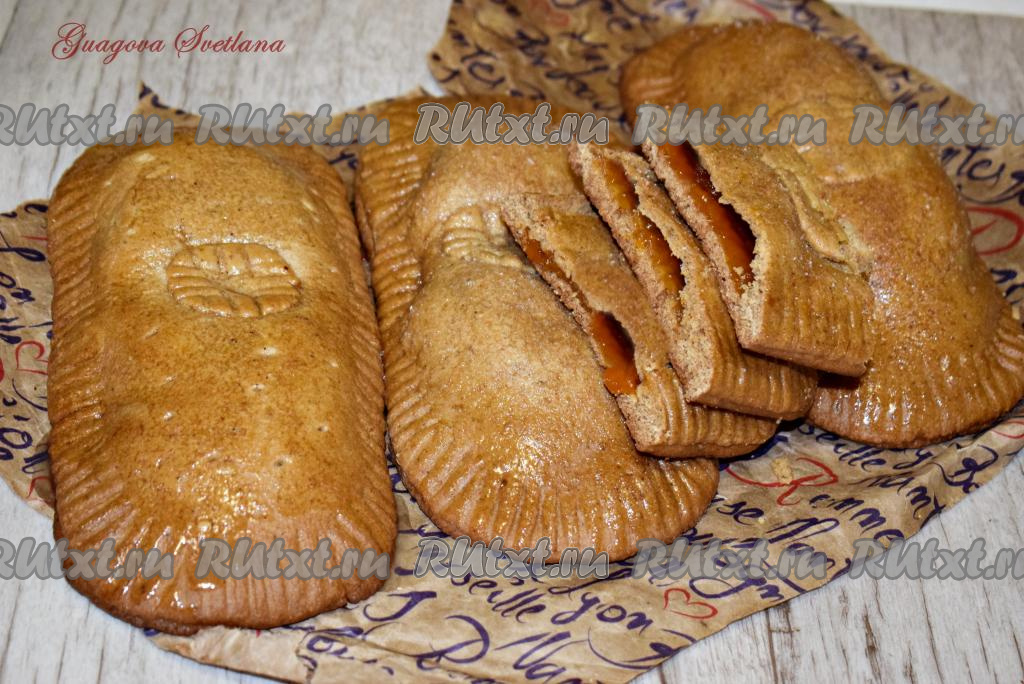 Далее накрываем часть с вареньем, второй раскатанной частью теста. Придавливаем края пряника пальцами, а затем - вилкой. По желанию, можно сделать украшение в стиле тульских пряников. Всю поверхность пряника для выхода пара сверху прокалываем ножом (проколы в тесте не позволят верхней части пряника вздуться в процессе выпечки).
