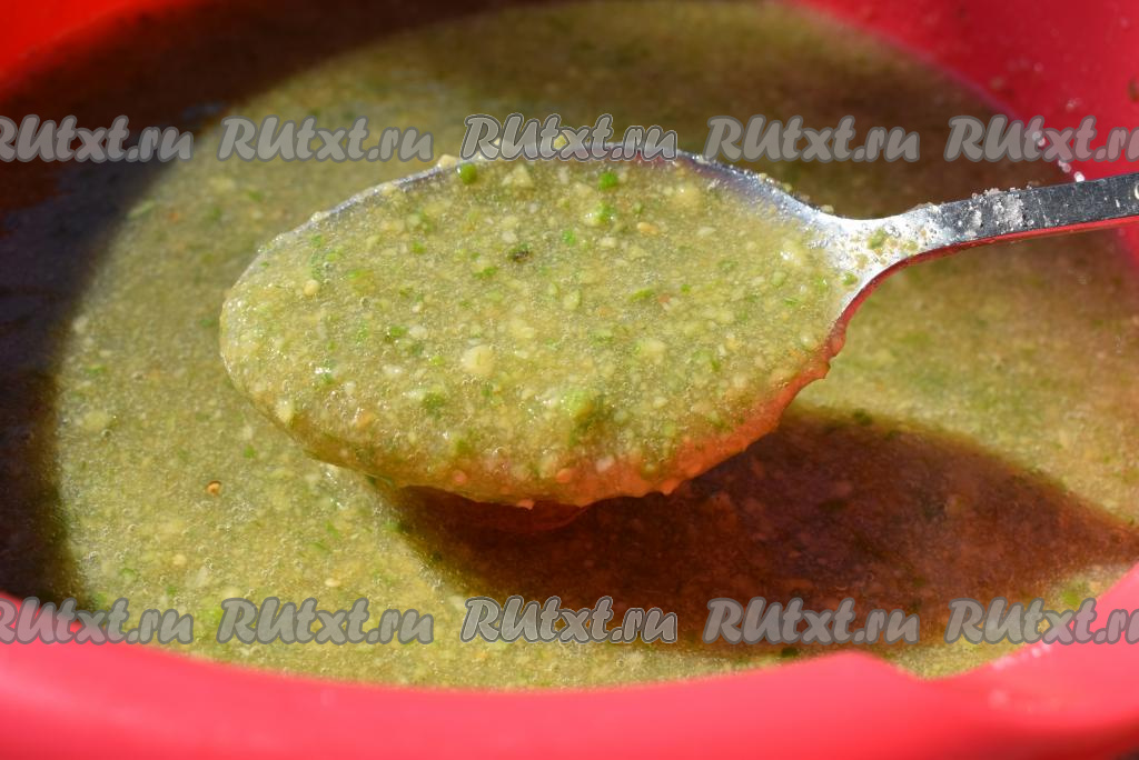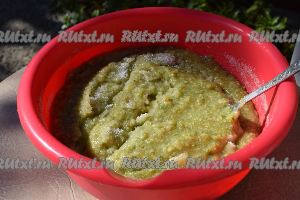 Масса изначально получается жидковатой, но, постояв немного в холодильнике, застынет и станет похожа по консистенции на повидло.