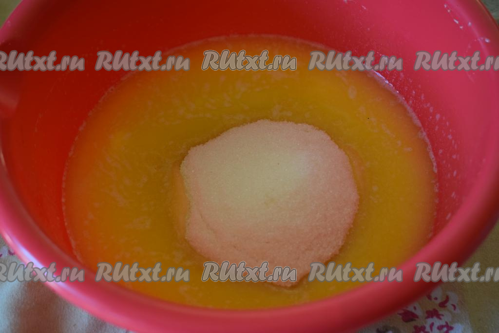К теплому маслу добавляем 130 грамм сахара.