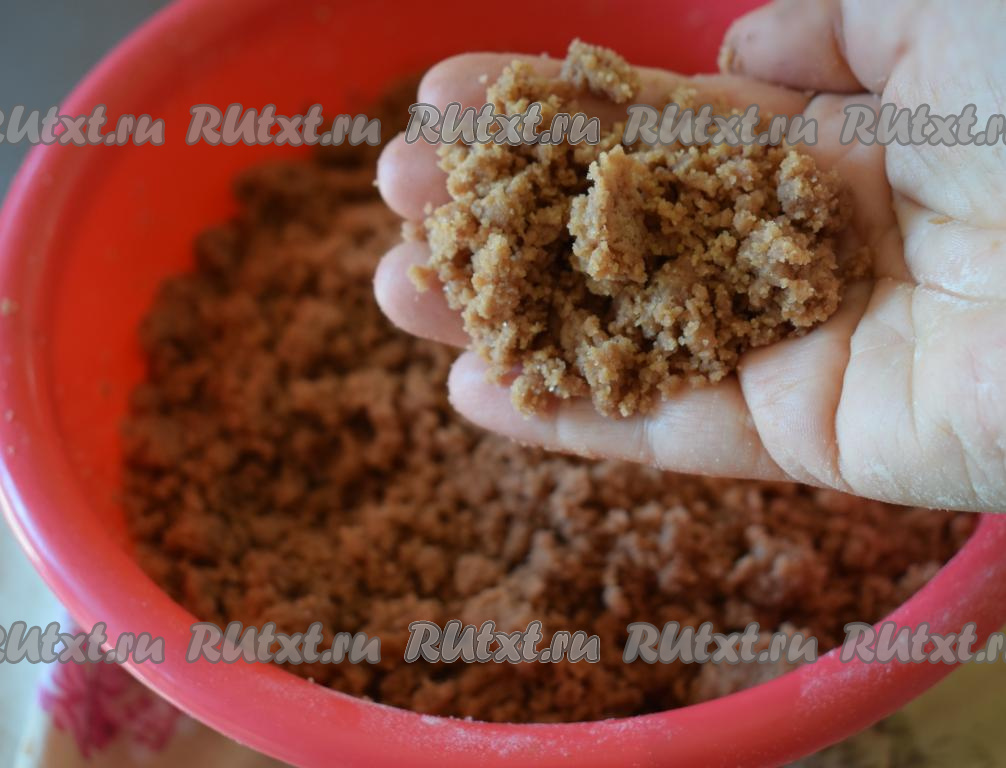 Готовое тесто должно получиться в виде лёгкой, рассыпчатой крошки, напоминающей торф - отсюда и название этого творожного пирога.