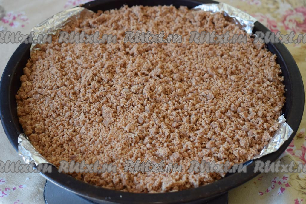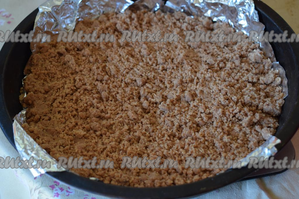 Сверху покрываем творожный слой оставшейся крошкой.