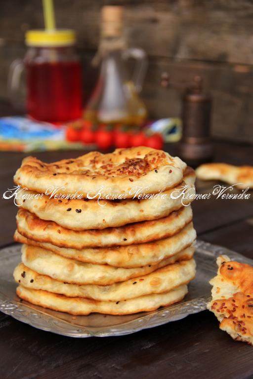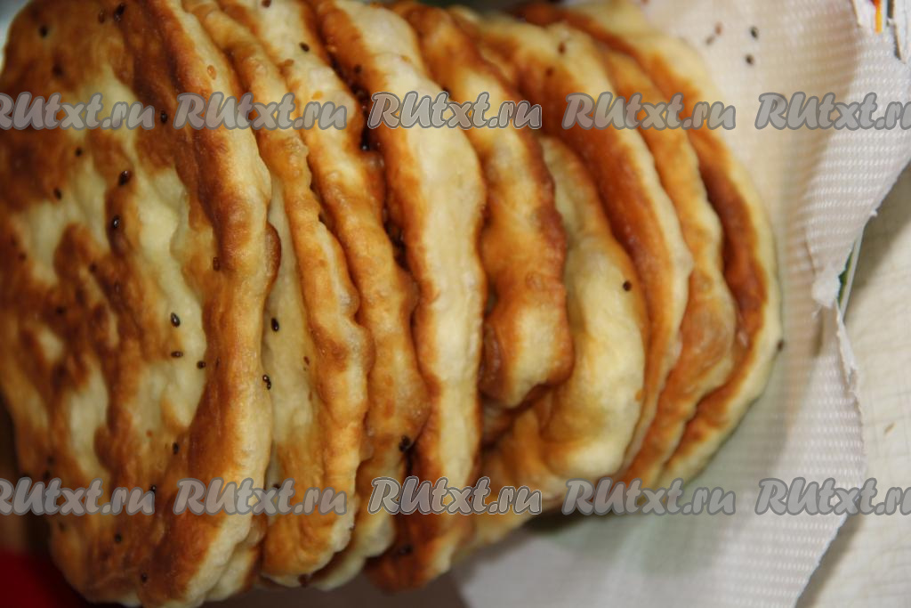 На сковороду влить масло, как на оладьи, разогреть сковороду, выложить лепёшки и жарить на среднем огне. Как только на поверхности лепёшки появятся пузырьки (и большие, и маленькие), нужно перевернуть.