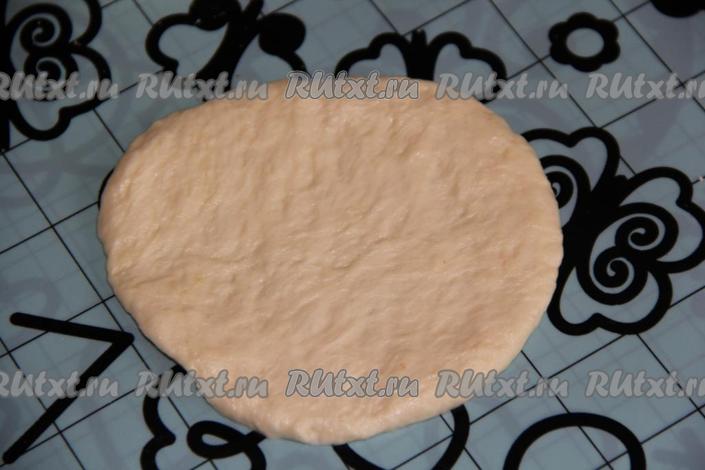 Готовое тесто выложить на силиконовый коврик или на стол, припыленный мукой. От теста отщипнуть небольшой кусочек и раскатать его в лепёшку толщиной, примерно, 3 мм. Размер лепёшек выбирайте сами, я сделала небольшие, поэтому из удвоенного количества ингредиентов у меня вышло 9 лепёшек. Подготовить все лепёшки.