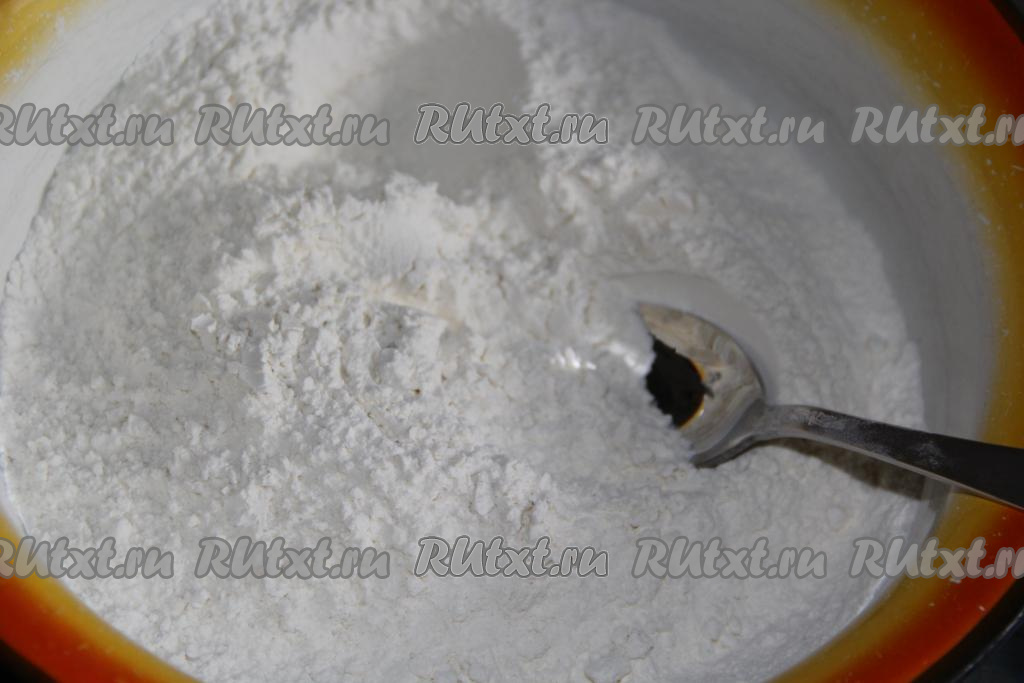 Перемешать сухие ингредиенты ложкой.