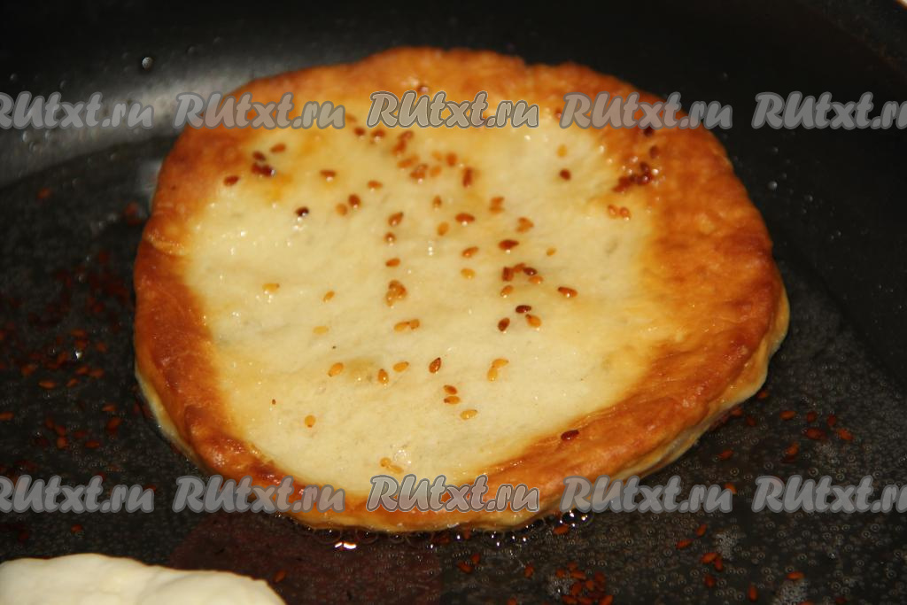 Затем жарить лепёшку с другой стороны до румяности.