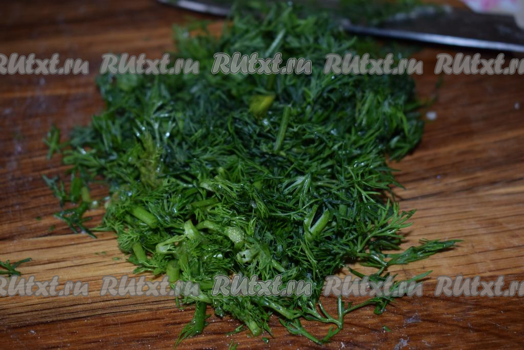 Укроп промыть под холодной водой, обсушить бумажными полотенцами и мелко нарезать.