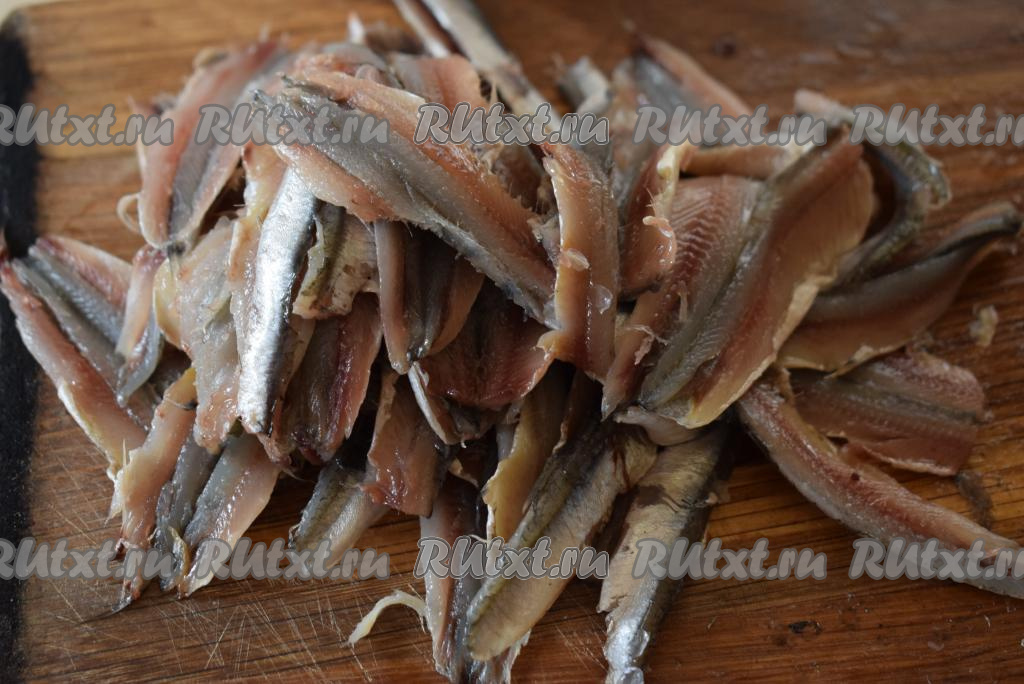 Отделить хамсу от хребтов с хвостиками и голов, получая филе рыбы.