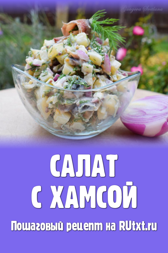 Салат с хамсой - это простое и вкусное блюдо, которое сможет разнообразить ваш рацион. Малосольная хамса в сочетании с картофелем, луком и интересной заправкой дают прекрасный результат. Салат готовится просто, является бюджетным, но в тоже время не банальным. Попробуйте приготовить такой салатик, я думаю, он вам понравится!
