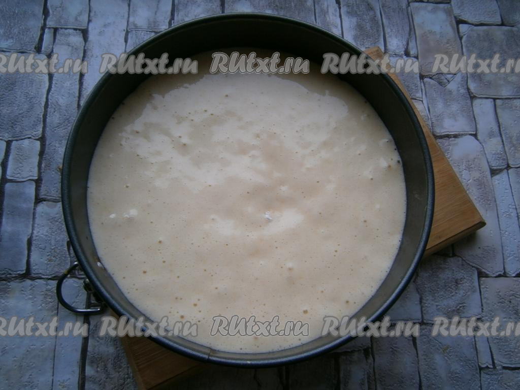 Форма для выпечки этого бисквита нужна небольшая, разъемная, диаметром 18-20 см. Застелить дно формы пергаментом и вылить тесто, которое по консистенции будет жидковатым.