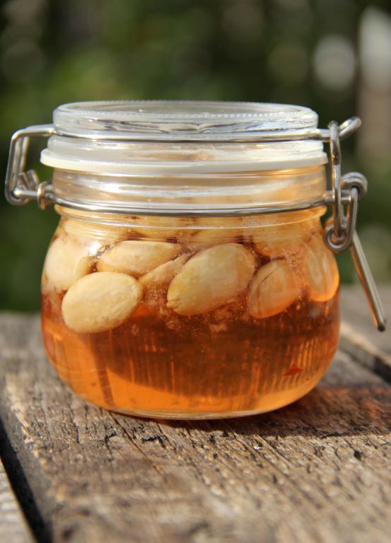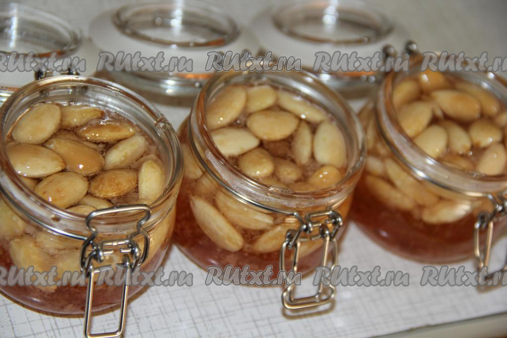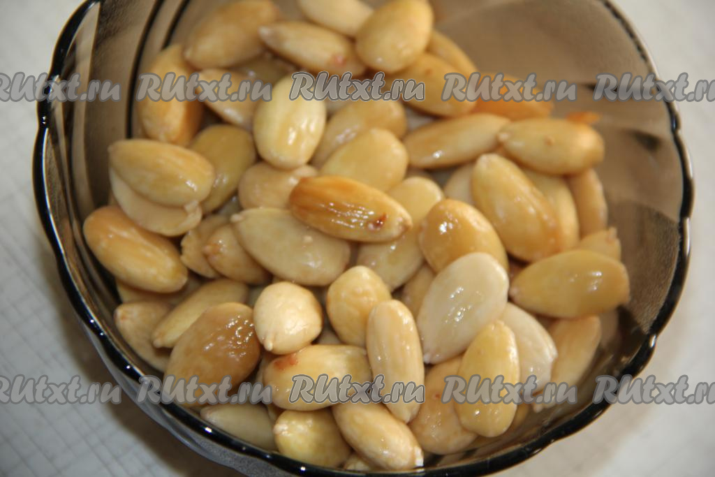 Пока наш сироп варится, нужно подготовить орехи. Если используете миндаль, тогда его нужно предварительно залить крутым кипятком и оставить на пару минут.