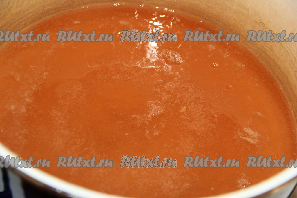 Процеженную жидкость измерить, вылить в кастрюлю, добавить сахар в нужной пропорции (на каждый литр сока потребуется 750 грамм сахара).