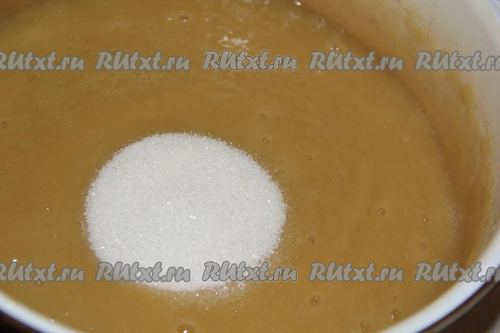 Всыпать в кастрюлю сахар.