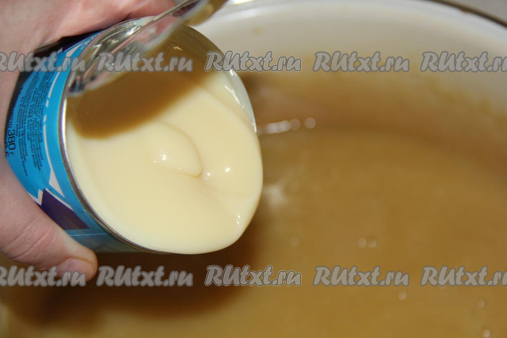 Затем добавить сгущённое молоко.