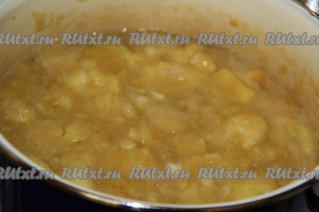 Поставить кастрюлю на огонь и накрыть крышкой. Варить яблоки на медленном огне до полного размягчения. У меня яблоки быстро размягчились (примерно, за 10 минут).