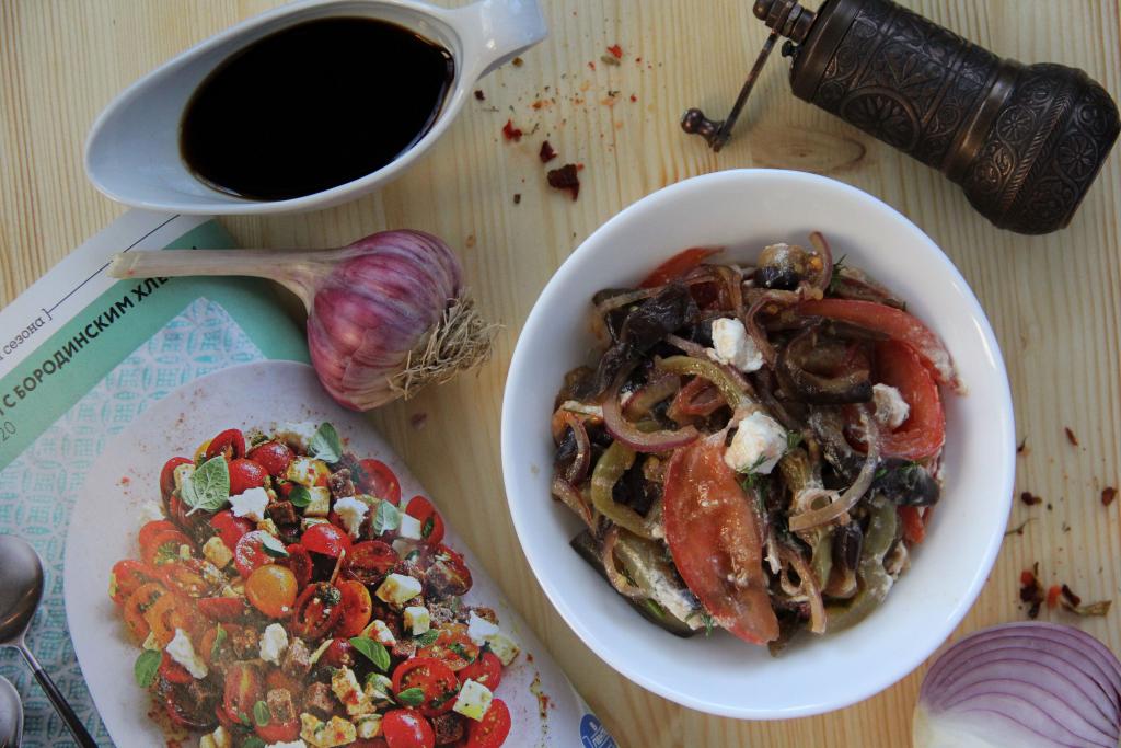 В сезон свежих овощей предлагаю приготовить вкусный, аппетитный салат из жареных баклажанов с помидорами и перцем. Такое блюдо можно подать в роли холодной закуски на ужин, воскресный обед или праздничный стол. Салат получается пикантным, в меру острым и достаточно сытным. Отличное блюдо, попробуйте!