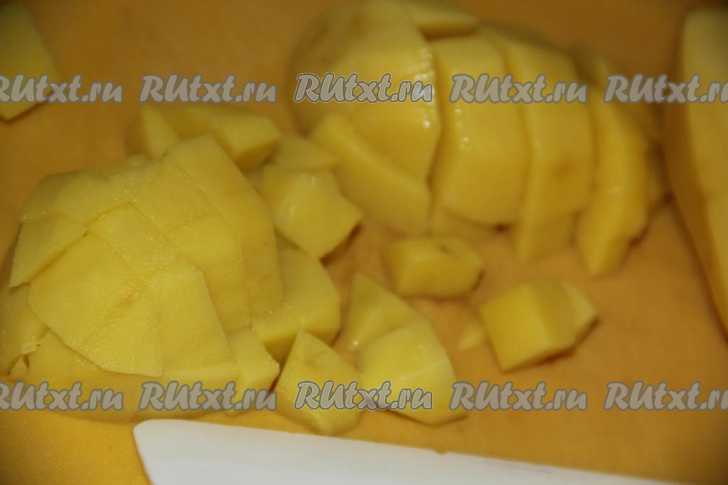 Картофель очистить и нарезать на кубики.