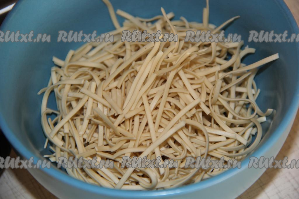Затем добавить яичную лапшу и очищенные креветки (если вы готовите с ними), довести до кипения и уменьшить огонь. Варить до готовности лапши (яичная лапша готовится очень быстро - минуты 3).