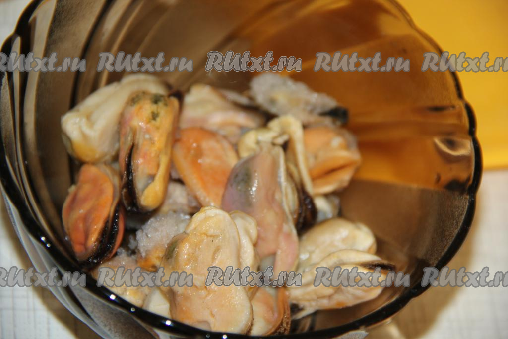 Мидии я использовала замороженные и предварительно не размораживала их.
