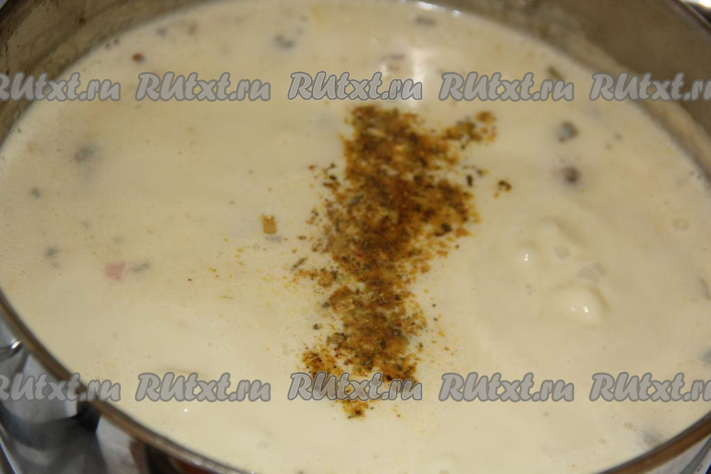 Затем посолить суп по вкусу, добавить специи. Снять суп с огня и дать настояться под крышкой минут 10.