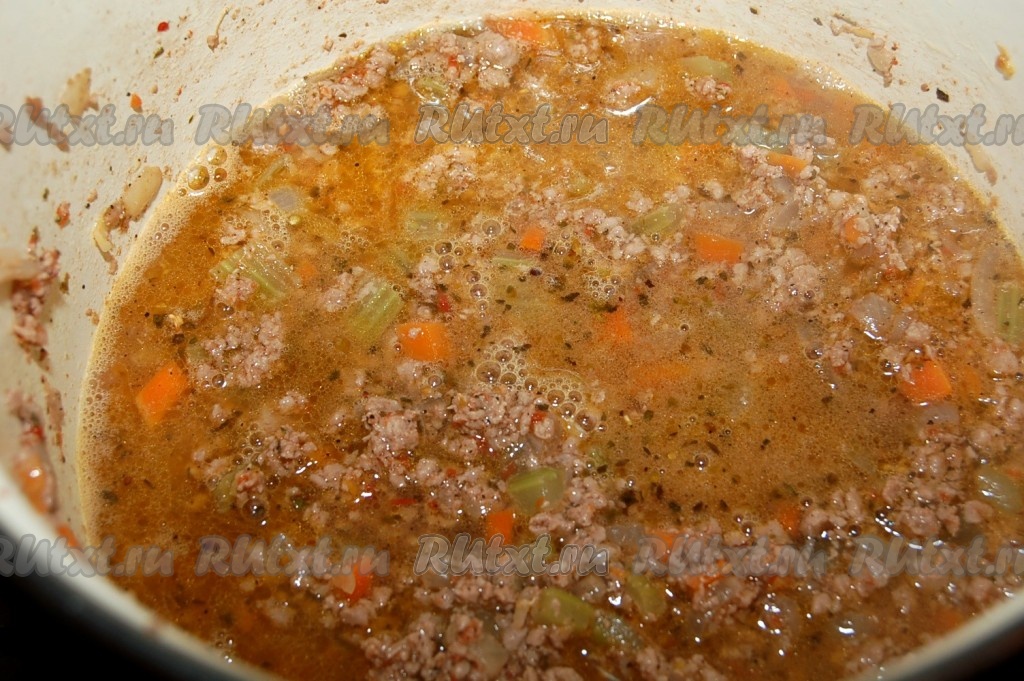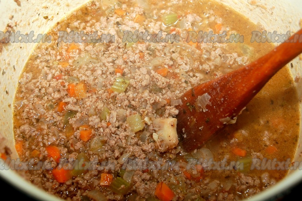 Добавить горячую воду и оставить тушиться 30 минут на маленьком огоньке.