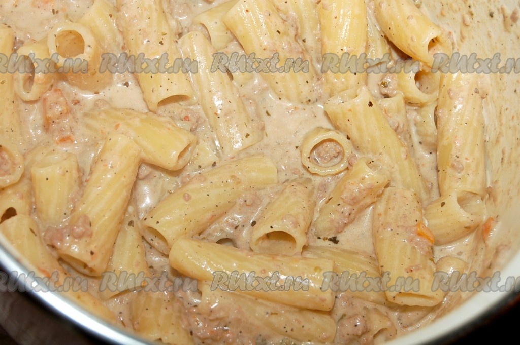 Теперь переложить макароны с соусом в то блюдо, в котором они будут подаваться. Можно делать порционно, а можно использовать большое блюдо.