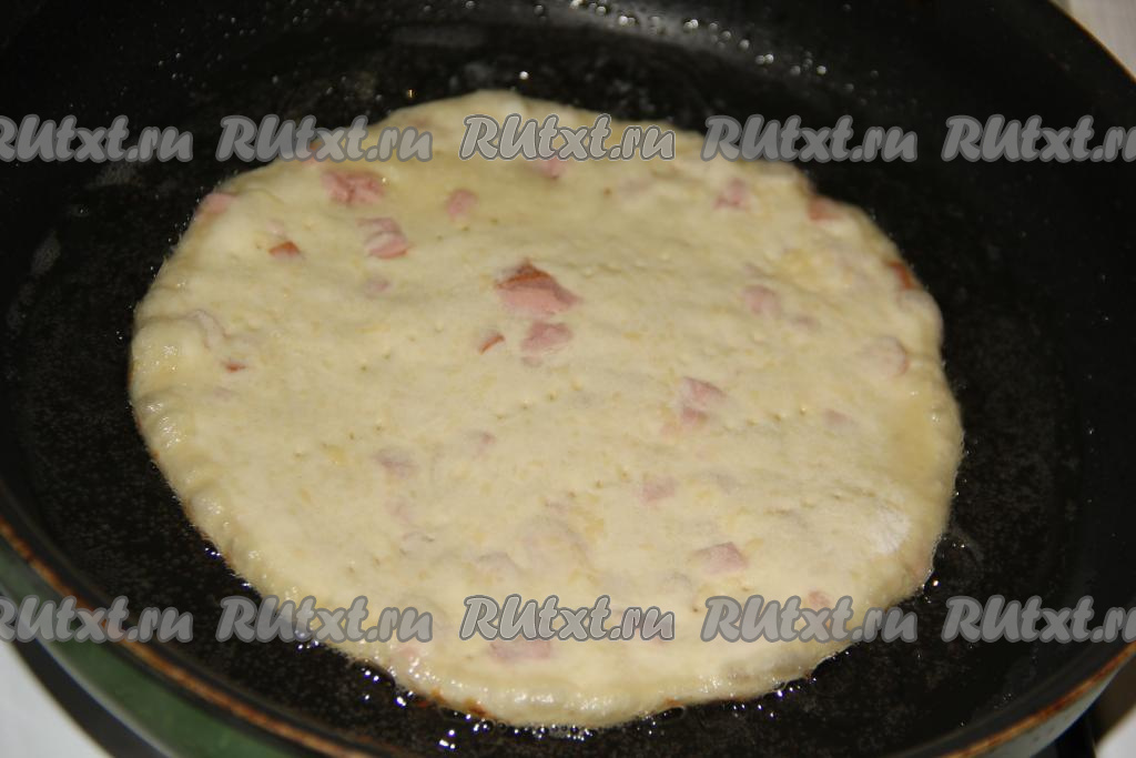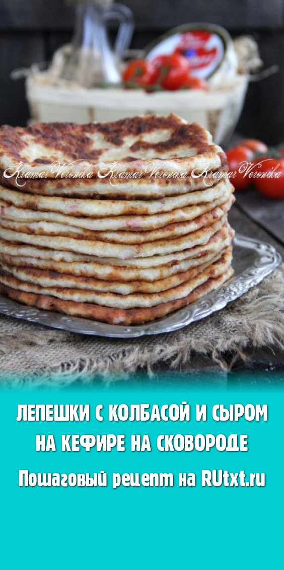 Аппетитные, нежные, сытные лепёшки с колбасой и сыром, приготовленные на кефире на сковороде, подать к столу в тёплом виде. Очень вкусно, попробуйте!